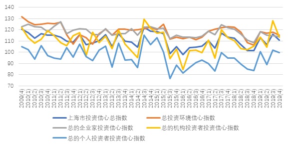 根据上海社会调查研究中心上财分中心和上海财经大学应用统计研究中心对上海市企业领导人或企业家、机构投资者和个人投资者的调查结果显示,第四季度上海财经大学上海市投资者信心指数为110.91点,虽然环比下降了5.27点,但同比上升9.68点,说明2019年第四季度上海市投资信心指数明显高于2018年第四季度,投资者心态仍处于乐观区域。