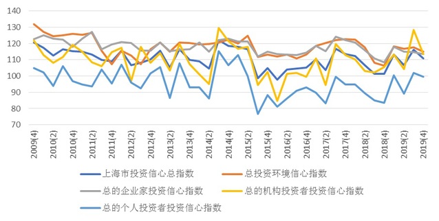 根据上海社会调查研究中心上财分中心和上海财经大学应用统计研究中心对上海市企业领导人或企业家的调查,2019年第四季度上海市企业家投资信心指数为113.62点,环比持平,同比上升5.13点,说明2019年第四季度上海市企业家投资信心明显高于2018年第四季度。