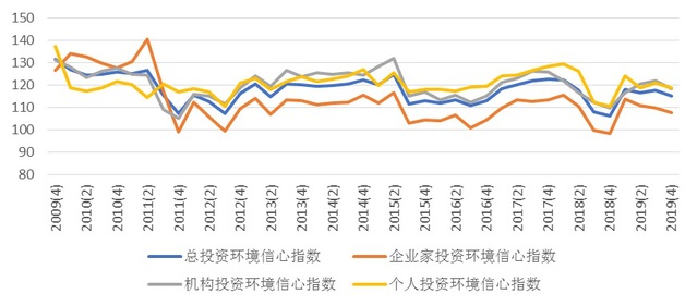 根据上海社会调查研究中心上财分中心和上海财经大学应用统计研究中心对上海市企业领导人或企业家、机构投资者和个人投资者的调查结果显示,第四季度上海财经大学上海市投资者信心指数为110.91点,虽然环比下降了5.27点,但同比上升9.68点,说明2019年第四季度上海市投资信心指数明显高于2018年第四季度,投资者心态仍处于乐观区域。