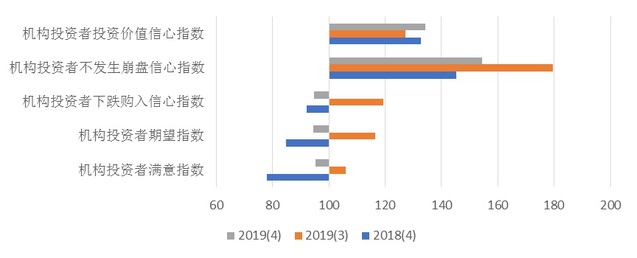 根据上海社会调查研究中心上财分中心和上海财经大学应用统计研究中心的调查,2019年四季度上海市机构投资者信心指数为113.47点,比上季度下降14.79点,比去年同期上升7.94点。表明本季度机构投资者对市场的信心与上季度相比有所降低,但明显高于2018年第四季度。