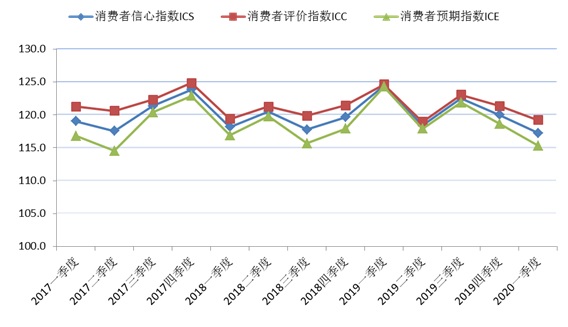 1  2017年第一季度至2020年第一季度上海市消费者信心指数及其构成