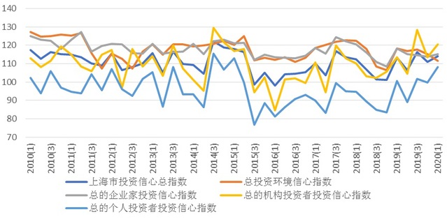 根据上海财经大学应用统计研究中心和上海社会调查研究中心上财分中心对上海市企业领导人或企业家、机构投资者和个人投资者的调查结果显示,2020年第一季度上海财经大学上海市投资者信心指数为114.03点,环比上升3.12点,同比基本持平。指数小幅上升,说明疫情下的上海市投资者信心依然乐观。