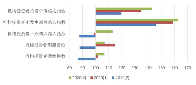 根据上海财经大学应用统计研究中心和上海社会调查研究中心上财分中心的调查,2020年第二季度上海市机构投资者信心指数为125.11点,环比上升4.74点,同比大幅上升20.74点。表明本季度机构投资者对市场的看法与上季度相比有所提升,且同去年相比,投资信心大幅增强。
