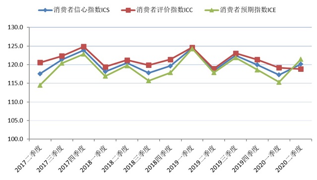 图1 2017年第二季度至2020年第二季度上海市消费者信心指数及其构成