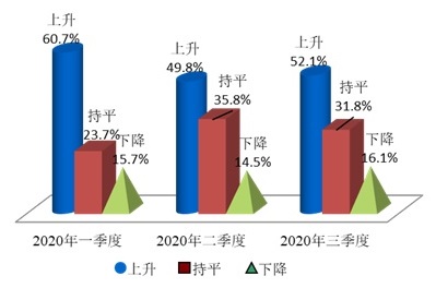 本季度消费者在通胀预期略有增加的同时,对加息的预期环比调整幅度相对较大。认为未来6个月内利率“会上升”的受访者由上季度的11.8%增加到19.0%,幅度为7.2个百分点,但同比下降了12.1个百分点;持“保持不变”看法的比例与上季度相比也有所增加,为40.3%,环比增加了3.1个百分点;而40.7%的受访者认为未来6个月内利率会下降,环比下降了10.3个百分点,但同比增加了17.8个百分点,处于历次调查的较高点位。本次调查结果显示加息预期相对于上个季度有所增加,但整体处于较低水平。对此上海财经大学徐国祥教授和崔畅副教授指出,经济恢复过程中仍面临较大的不确定性,短期内货币政策会保持相对稳定,但贷款利率有进一步下调的空间。
