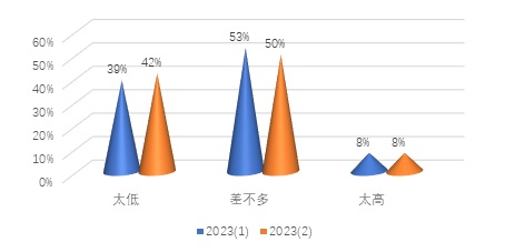 本季度,个人投资者投资价值信心指数小幅上升。与上季度相比,在关于“与真实的基本价值或合理的投资价值相比,您认为目前的上证指数如何”的调查中,认为太低的占比从39%升至42%,认为差不多的占比由53%降至50%,认为太高的占比持平,具体如图9所示。