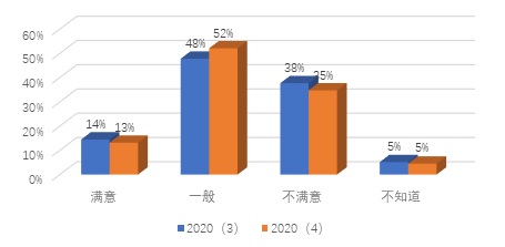 本季度个人投资者满意指数呈现小幅上升。在关于“您对自己在最近3个月里的投资收益感到如何”的调查中显示,感到满意的占比从14%降至13%,感到一般的占比由48%升至52%,感到不满意的占比从38%降至35%,如图9所示。