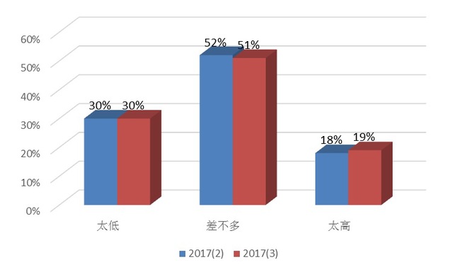 图10 2017年2季度与2017年3季度个人投资者对上证指数投资价值的看法图