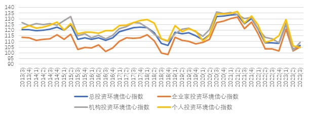 图2 上海财经大学2013年第3季度至2023年第3季度上海市投资环境信心指数图