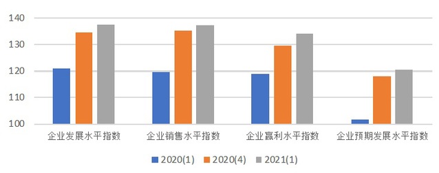 上海财经大学上海市社会经济指数系列课题组总负责人、上海财经大学应用统计研究中心主任、上海社会调查研究中心上财分中心主任徐国祥教授和统计与管理学院常宁教授分析指出,2021年第一季度在宏观调控政策与内生动力持续修复的协同作用下,国内市场的供给和需求显著回升,经济进一步复苏的预期提振了企业家群体对未来发展的信心。此外,疫情之后我国适时推行的消费补贴政策,刺激了人民群众的消费需求,市场回暖提升了企业的销售和盈利水平。第三,随着助企纾困的财政政策和支持实体经济的金融政策的不断落地,企业的经营环境显著改善,加之全球疫情得到一定程度的缓解,外贸形势总体持续向好。因此,本季度上海市企业家投资信心指数较前期有所上升。