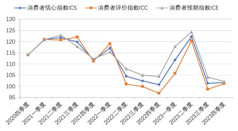 图1  2020年第四季度至2023年第四季度上海市消费者信心指数及其构成
