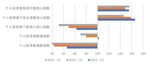 (四)2023年第四季度上海市个人投资者信心指数为84.66点,环比下降7.35点,同比下降21.88点,指数仍处于悲观区域。