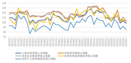 图2  上海市投资者信心指数2013年第4季度至2023年第4季度核心指数运行情况图