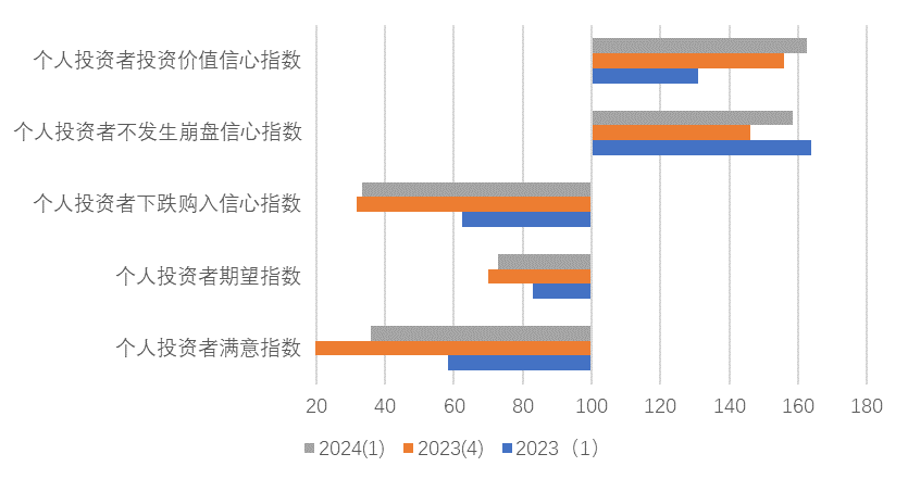上海财经大学社会经济指数系列课题组总负责人、上海社会调查研究中心上财分中心主任、上海财经大学应用统计研究中心主任徐国祥教授和统计与管理学院常宁教授分析指出,2024年第一季度以来A股市场回暖态势明显,个人投资者投资收益改善,提升了对投资的满意度。随着美国加息政策接近尾声,外资流出趋缓,主力资金涌入A股,彰显对后市的信心,提振了投资者预期。因此,本季度个人投资者的投资信心有所上升。