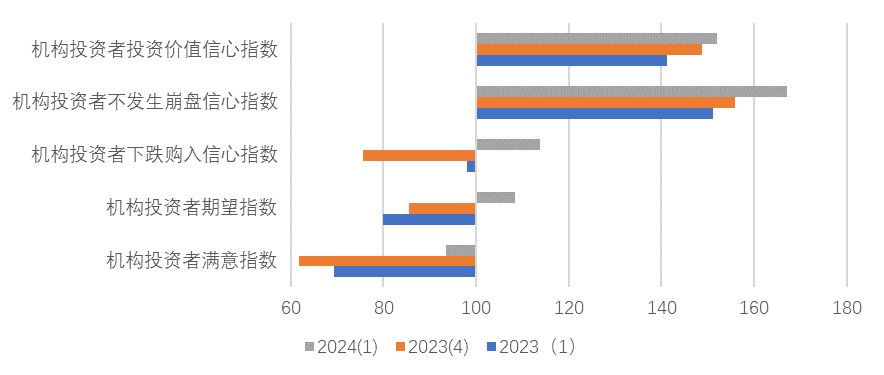 (三)2024年第一季度上海市机构投资者信心指数大幅上升,为125.62点,环比上升21.20点,同比上升10.48点。指数仍处于乐观区域。