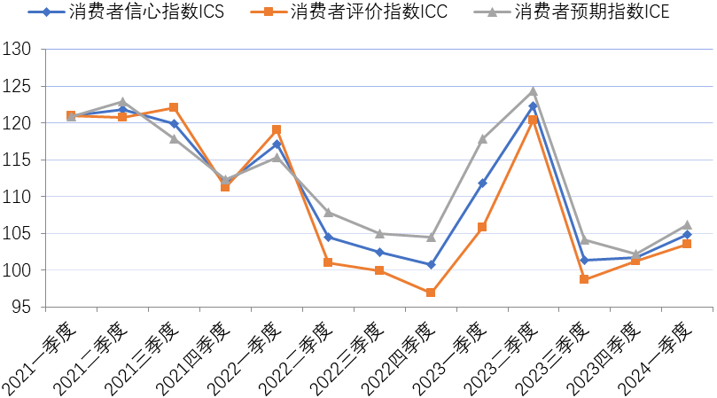 图1 2021年第一季度至2024年第一季度上海财经大学上海市消费者信心指数及其构成