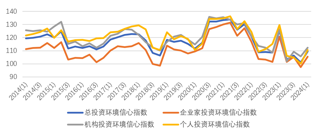 图2 2014年第1季度至2024年第1季度上海财经大学上海市投资环境信心指数图
