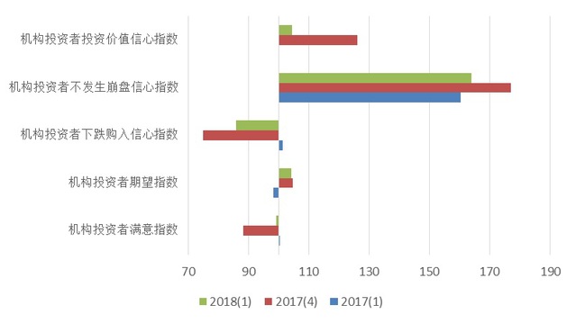 根据上海社会调查研究中心上财分中心和上海财经大学应用统计研究中心最新调查结果显示,2018年第一季度上海市机构投资者信心指数为110.18点,比上季度下降2.74点,同比持平。表明本季度机构投资者对市场的信心虽然较上季度有所下降,但总体还处于乐观区域。