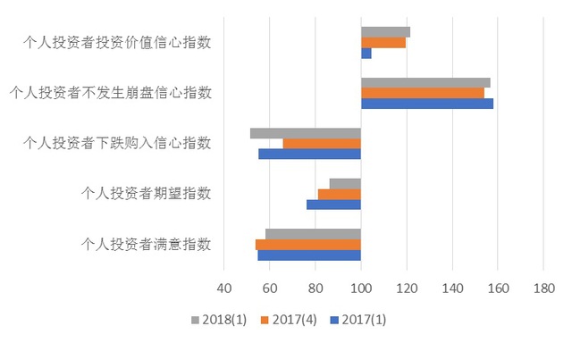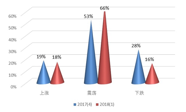 图8 2017年4季度与2018年1季度个人投资者对未来三个月大盘变化的看法图