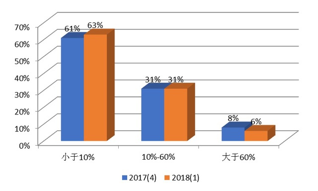图9 2017年4季度与2018年1季度个人投资者对未来三个月大盘下跌30%的可能性的看法图
