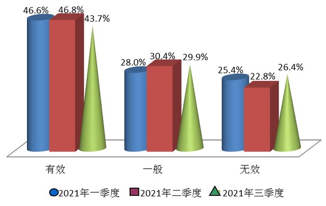 在本季度的调查中,43.7%的受访者认为房地产市场调控的政策有效,环比和同比分别下降3.1和2.4个百分点;而有26.4%的消费者对该项工作的评价投了不满意票,环比增加了3.6个百分点,比去年同期亦增加了5.7个百分点。本季度上海市二手房市场表现冷淡,限贷限购已经趋于常态,虽然新房市场较为活跃,但市场日益规范,使得消费者对政府房地产调控的满意度维持在较高的水平。