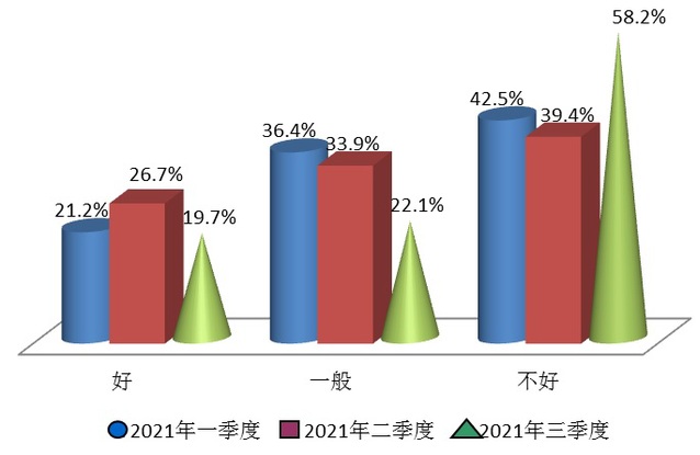 本季度调查结果显示只有16.2%的消费者认为当前是购房的“好”时机,环比下降10.6个百分点,同比亦减少了7.7个百分点;认为时机“不好”的消费者比例则为63.6%,环比和同比分别大幅上涨了20.8个百分点和12.5个百分点;而选择“一般”的消费者本季度环比和同比分别下降了10.2和4.8个百分点,占比为20.2%。可见本季度部分消费者对于购房时机的评价向“不好”大幅集中,本季度房地产市场仍然处于降温过程中,消费者的购房意愿出现大幅下降,说明消费者对房价下行存在进一步的预期。