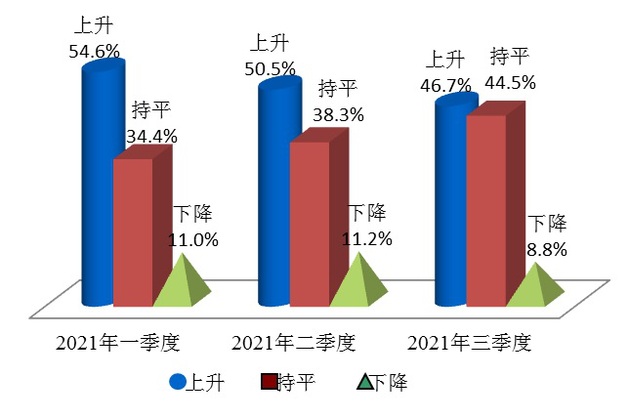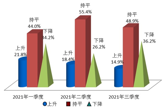 根据上海社会调查研究中心上财分中心和上海财经大学应用统计研究中心对2021年第三季度上海市消费者信心指数的调查结果显示,本季度消费对于物价稳定的预期有所增强,消费者对未来物价继续上涨的预期有所增强,降息预期大幅增加。