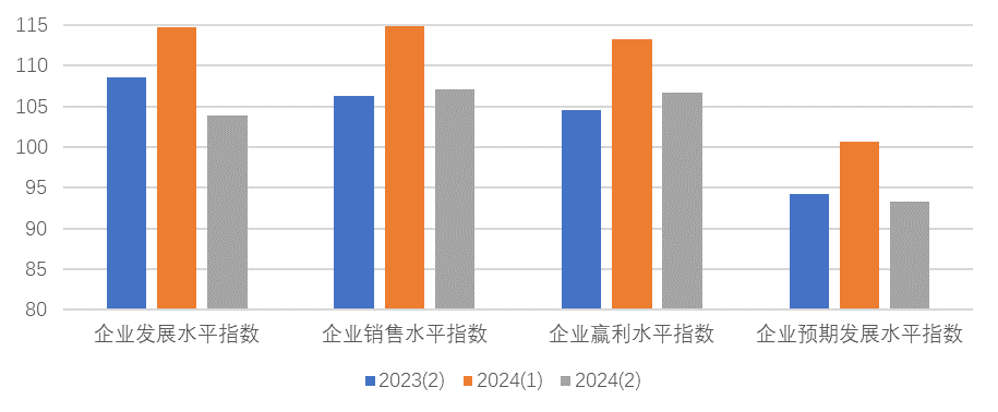 上海市企业家投资信心指数反映企业家对于本企业生产经营现状的满意程度和对未来的预期。如图3所示,本季度企业家投资信心指数的分类指数均呈现下降态势,其中表现当前企业发展状况的企业发展水平信心指数为103.87点,环比下降10.84点,同比下降4.68点;反映企业销售水平的企业销售水平信心指数为107.04点,环比下降7.83点,同比略升0.69点;企业盈利水平信心指数为106.69点,环比下降6.61点,同比上升2.11点;企业预期发展水平信心指数为93.31点,环比下降7.32点,同比略降0.99点,指数落入悲观区域。