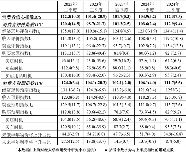2024年第二季度上海财经大学上海市消费者信心指数及分类指数