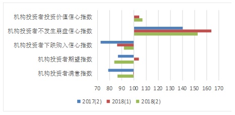 (三)2018年第二季度上海财经大学上海市机构投资者信心指数为103.12点,比前一季度下降7.05点,同比上升8.58点,指数仍位于乐观区域。