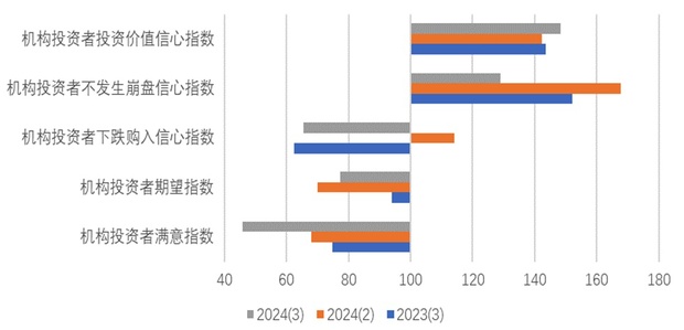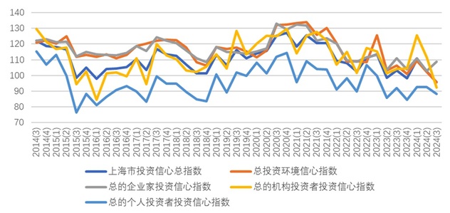 根据上海社会调查研究中心上财分中心和上海财经大学应用统计研究中心的调查,2024年第三季度上海市机构投资者信心指数为92.24点,环比大幅下降19.28点,同比大幅下降11.93点。