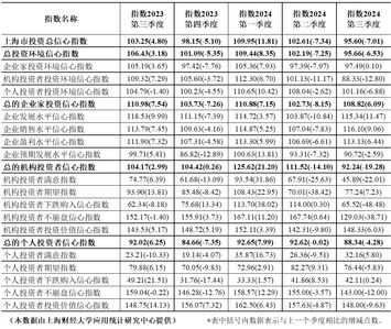 上海财经大学投资者信心指数2023年第3季度-2024年第3季度核心指数情况表
