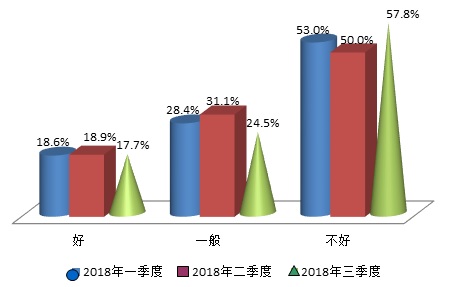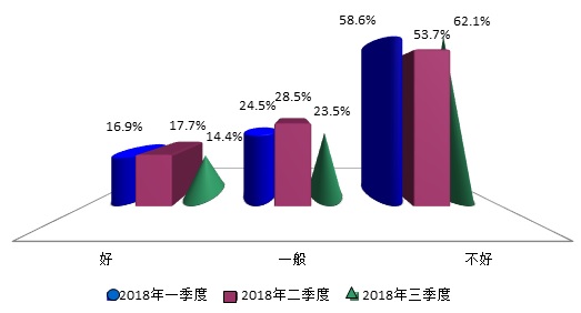 本季度调查结果显示只有14.4%的消费者认为当前是购房的“好”时机,环比下降3.3个百分点,同比上涨2.8个百分点;认为时机“不好”的消费者比例则为62.1%,环比和同比分别上涨了8.4个百分点和1.个百分5点;而选择“一般”的消费者本季度环比和同比分别下降了5.0个百分和4.3个百分点,占比为28.5%。可见本季度部分消费者对于购房时机的评价有向“不好”集中的趋势,本季度房地产价格出现了久违的回调,消费者的购房意愿却有所下降,说明消费者对房价下行存在进一步的预期。