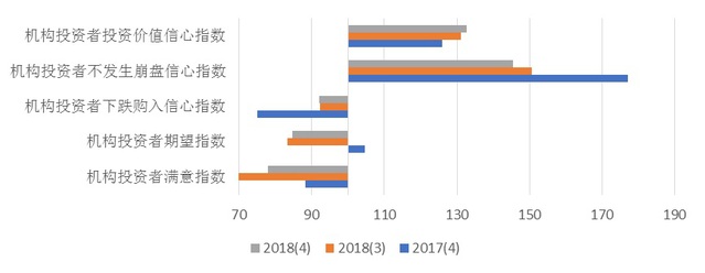 (三)2018年第四季度上海市机构投资者信心指数为105.52点,比上季度上涨3.36点,比去年同期下降7.40点。表明本季度机构投资者对市场的看法较去年消极,但相比上季度有所好转。