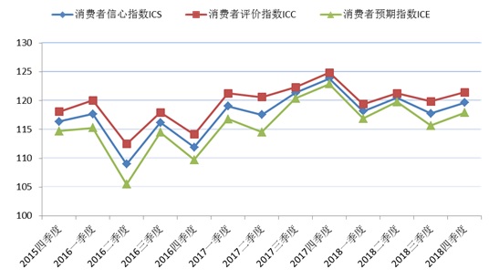 图1 2015年第四季度至2018年第四季度上海市消费者信心指数及其构成