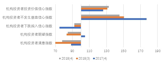 根据上海社会调查研究中心上财分中心和上海财经大学应用统计研究中心的调查,2018年第四季度上海市机构投资者信心指数为105.52点,比上季度上涨3.36点,比去年同期下降7.40点。表明本季度机构投资者对市场的看法较去年消极,但相比上季度有所好转。