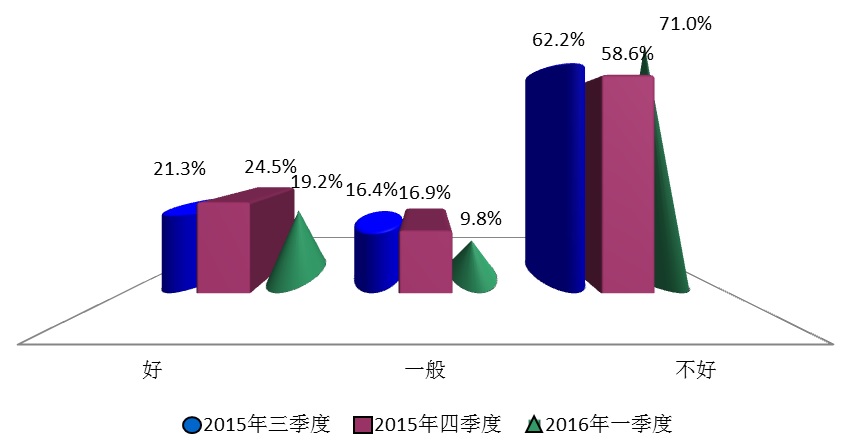 综合近三个季度的调查结果来看,消费者的购买意愿在2015年第四季度达到高峰。本季度调查结果显示19.2%的消费者认为当前是购房的“好”时机,同比持平,环比下降5.3个百分点;认为时机“不好”的消费者占比则为71.0%,环比大幅上升12.4个百分点,同比基本持平,略下降0.6个百分点;而选择“一般”的消费者本季度环比也相应下降了7.1个百分点。可见本季度消费者对购房时机的评价正在大幅度地向“不好”调整,说明近期房价的大幅快速上涨已经超出了消费者的承受力和预期,使得消费者对房地产的判断在本季度出现了转折,同时对政府出台调控政策预期也在增强,所以越来越多的消费者认为当前不是购房的好时机。本季度末,上海房产新政策终于出台,对抑制房价的过快上涨有很好的作用。