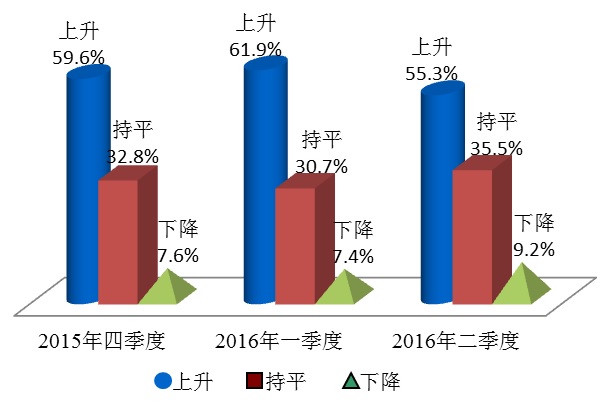 上海财经大学应用统计研究中心对2016年第二季度上海财经大学上海市消费者信心指数的调查结果显示,消费者对未来物价继续上涨的出现较大幅度的调整,环比下降了6.6点。