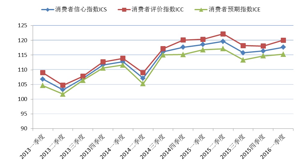 上海财经大学应用统计研究中心最新调查结果显示,2016年第一季度上海财经大学上海市消费者信心指数为117.7点,环比上升1.3点,同比略降0.9点。其中,上海市消费者评价指数为120.1点,较上季度上升2.0点,同比基本持平,略下降0.3点。上海市消费者预期指数为115.3点,环比上升0.6点,同比下降1.5点。本季度各项主要指标环比出现反弹,且同比下降幅度有所减少,说明本市消费者对上海市经济发展的评价和信心开始回升,本季度召开的“两会”向社会传递了政府对经济长期向好的信心,同时也落实了多项关乎民生的政策法规,使得消费者对“十三五”开局之年的上海市经济形势的评价和预期出现反弹,但同时我国整体社会和经济也处于全面治理改革和结构转型的困难阶段,多项主要经济指标出现调整,进一步落实五大发展理念是当前面临的重大挑战。