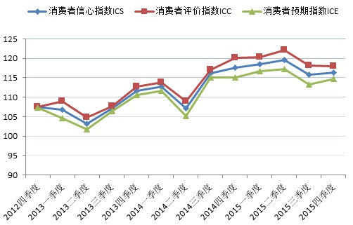 二、2015年第四季度上海市消费者信心指数运行稳定,环比略升0.6点,同比下降1.2点