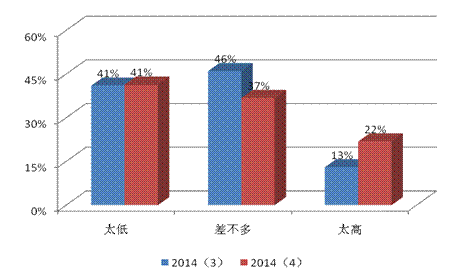 本季度机构投资者投资价值信心指数也大幅下滑,在关于我国股市投资价值问题的调查中,超过四成的机构投资受访者认为“与合理的投资价值相比,我国目前的上证指数太低,认为指数与投资价值相当的受访者比例从第三季度的46%降至本季度的37%,认为指数太高的受访者比例从第三季度13%上升至本季度22%,如图6所示。