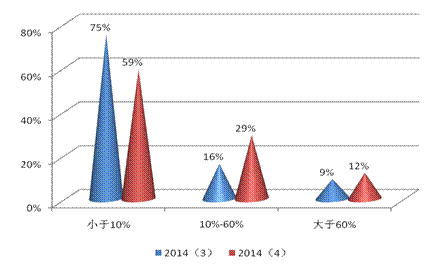 图5 2014年3季度与4季度上海市机构投资者对大盘指数下跌30%概率的看法图