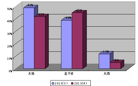 本季度个人投资者投资价值信心指数也降幅明显,受访的个人投资者中,有42%认为与合理投资价值相比目前的上证指数太低,45%的人认为与合理投资价值相比目前的上证指数大体相当,5%则认为与合理投资价值相比目前的上证指数太高,如图9所示。