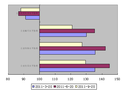 上海财经大学社会经济指数系列课题组总负责人、上海财经大学应用统计研究中心主任徐国祥教授和常宁副教授分析指出,由于今年三季度中宏观政策保持偏紧态势,企业家普遍感受到了贷款偏紧、借款利率偏高的压力,加之节能减排、投资放缓等因素也抑制了工业生产的增长,企业家对当前发展水平的信心明显减弱;与此同时,外围经济出现大幅动荡,外需市场复苏缓慢,出口增长显著回落,企业家对销售水平的信心也随之降低;此外,三季度由于企业增速放缓、成本推动型物价上涨等因素影响,导致企业盈利水平继续下滑,因此企业家对盈利水平的信心也出现了较大降幅。三个分类指数的共同下跌的趋势表明,企业家对当前生产经营状况的满意度有明显降低。另一方面,随着原材料及生产资料价格指数高位趋稳,以及对需求回升持谨慎态度,企业家对未来六个月企业发展形势的预期变化不大,仍旧维持较悲观状态。