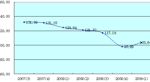 根据上海财经大学应用统计研究中心对上海市投资者的调查,2009年第一季度上海市投资环境信心指数为103.64点,首次转变连续五个季度下降的趋势,较上季度上升5.74点,重回中性值100点以上水平。具体见下图。