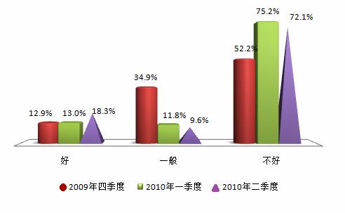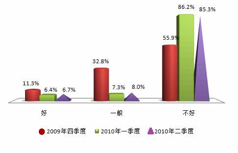 温总理在政府工作报告中“坚决遏制部分城市房价过快上涨势头,满足人民群众的基本住房需求”是今后房地产调控的目标。国家住建部、央行和银监会三部门严格规范“二套房认定标准”,同时取消原二套房利率优惠政策,缩紧信贷投放额度,同时在5月中旬再度提高了银行存款准备金率,严控信贷风险,借以遏制房价飞涨的势头。受此影响,在本季度的被访者中,只有6.7%的消费者认为当前购房时机“好”;认为时机“不好”的则高达85.3%,环比下降0.9个点。