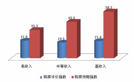 图4 不同收入阶层消费者的购房评价指数和购房意愿指数图