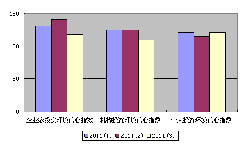 根据上海财经大学应用统计研究中心对上海市投资者的调查,2011年第三季度上海财经大学上海市投资环境信心指数为115.75点,较上季度回落了10.84点,同比下降了9.29点。但该指数值还处于乐观区域,表明上海市当前的投资环境仍然较好。