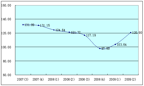 根据上海财经大学应用统计研究中心对上海市投资者的调查,2009年第二季度上海市投资环境信心指数为120.9点,在上季上升的基础上继续大幅上升17.26点,呈现明显乐观状态。具体见下图。