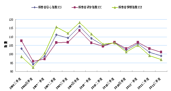 根据上海财经大学应用统计研究中心最新调查结果显示,2011年第三季度上海财经大学上海市消费者信心指数为99.0点,环比下降2.2点,同比下降幅度扩大到7.7点。其中,消费者评价指数为101.1点,较上季度下降2.1点,同比下降5.7点。消费者预期指数为96.9点,环比下降2.3点,同比大幅回落达9.6点。各季度上海财经大学上海市消费者信心指数的具体指数值参见附表一。各项指数在上季度之后继续了全线回落的态势,尤其是消费者信心指数自2009年第一季度来首次下降到中性值以下,个别指标再创新低,出现了调查以来的最低值,各项指数在本年度第一季度略有反弹后,连续两个季度的回调使得下探趋势明显。上海财经大学徐国祥教授指出,在过去的两个季度里,国内外的经济形势都面临着严峻的挑战,欧美债务危机的进一步恶化导致了全球经济紧缩,金融危机的负面影响远没有过去,世界经济的复苏之路迎来了第二次减速。而国内的高通胀压力、政策调整压力、成本上升压力、社会稳定压力和股市低迷压力等,这都动摇了消费者的信心,使本季度的消费者信心指数跌到了中性值100点以下,落在了悲观区域。